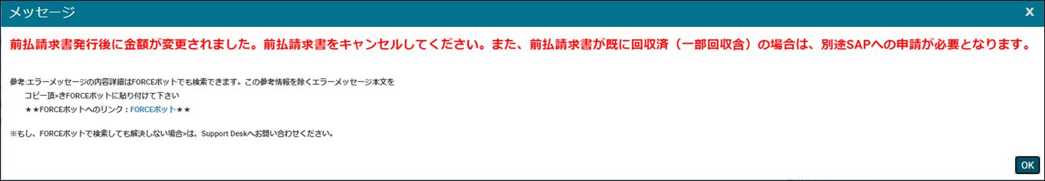 →前払請求書をキャンセルしてください。(再作成の必要がある場合は作成ください)