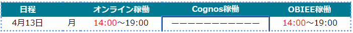 ※ 変更点: 4月13日(月曜日)FORCE稼働時間が変更(短縮)になっています。
