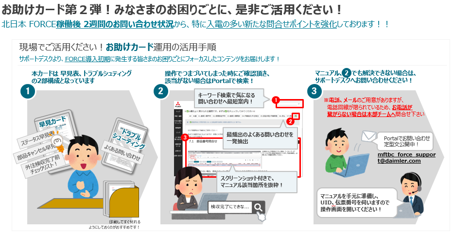 FORCE整備ユーザーの皆様に向けて、システム導入直後にSupport Deskへ多く頂く「よくある問い合わせ」と、