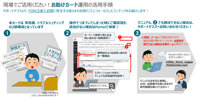 日々操作でお困りのシーンでは、マニュアル/FORCE Portalと併せてぜひ活用ください!