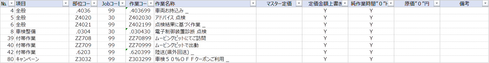 【整備】FORCE独自作業コード一覧_v1.2.xls をリリースしました