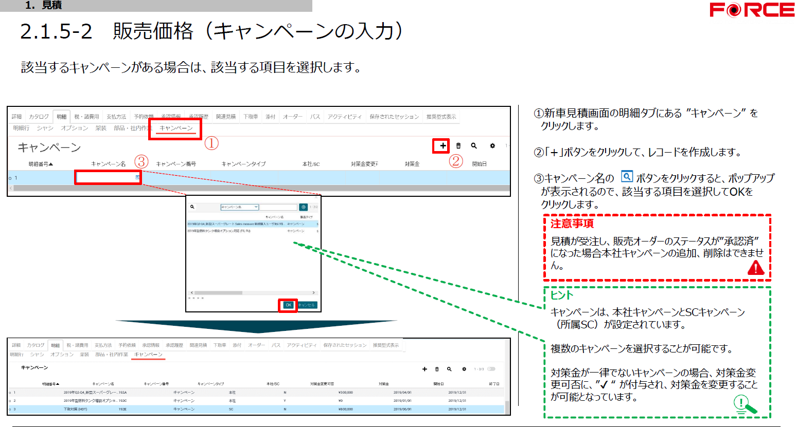 また受注後の訂正稟議でHQキャンペーンの追加、削除はできなくなりますのでご注意ください。