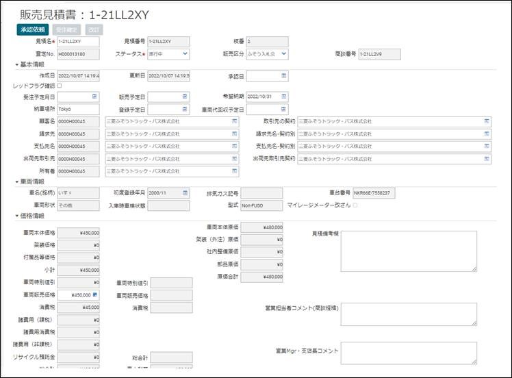 →中古車販売見積と中古車受注の画面のレイアウトを変更しました。操作マニュアルの画像も差し替えているので操作面でわからない際はマニュアルをご覧ください。