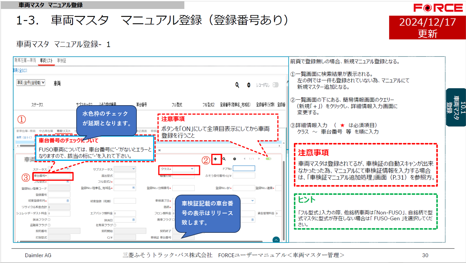 ・FUSO車についての‘-’チェックは、12月16日夜間のリリースに含まれません。