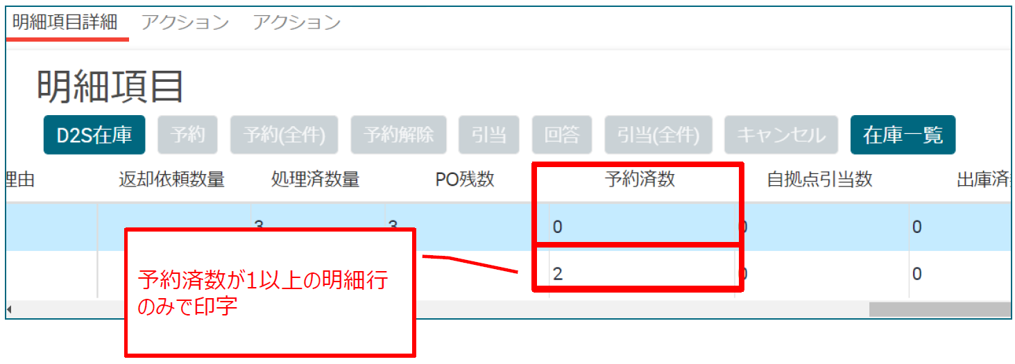 オーダー明細行の予約済数が 1 以上の明細行のみで印字されるようになります。(販売・社内・経費すべて)