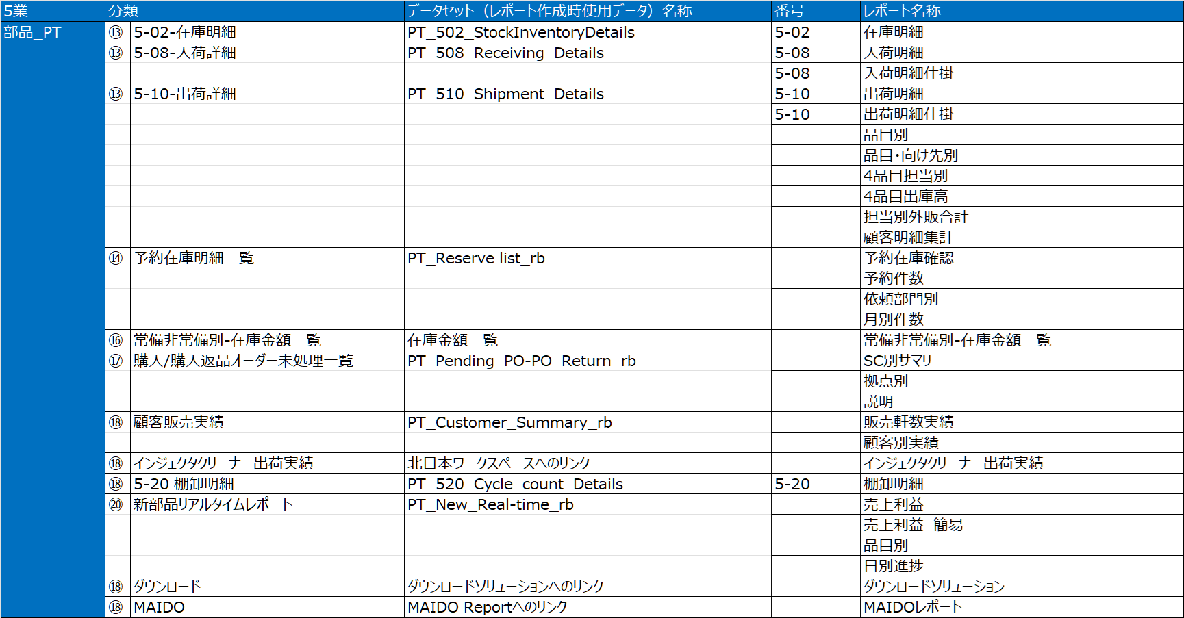 レポート番号とレポート名は以下よりご確認ください。