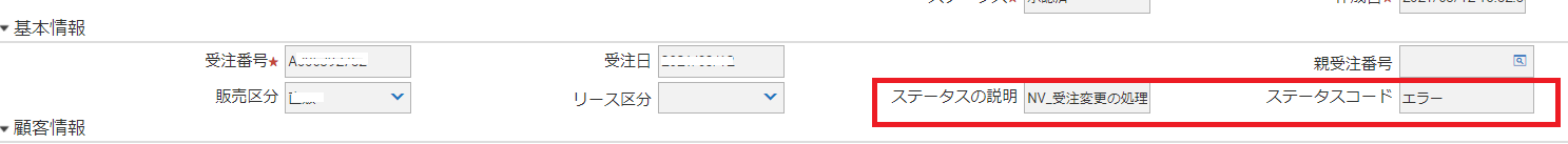 ステータスの説明 NV_受注変更の処理に失敗しました