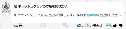 チャットボットに「キャッシュクリアの方法」を追加致しました。